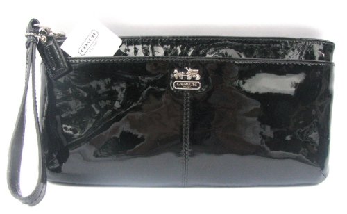Crafted in high gloss black patent leather and adorned with the COACH iconic horse and carriage logo. The removable strap adds versatility. Wear it day or night, work or play. The perfect size to carry all your essentials!
