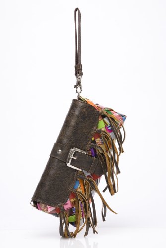 The Tassy Clutch is a versatile cute clutch, which features leather tassles hanging from a leather flap, as well as a removable handle that transforms it from a clutch to a handbag.